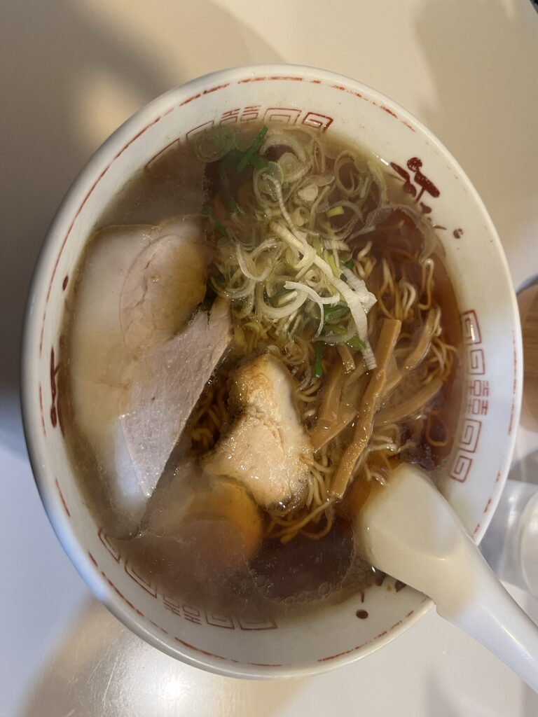 あっさりとした魚介スープに細ちぢれ麺、削り節の香りがふわっと広がる正統派の味に、心がほっとしました。